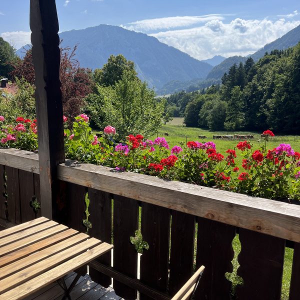 • Direkter Zugang zum überdachten Südbalkon mit  Bergblick